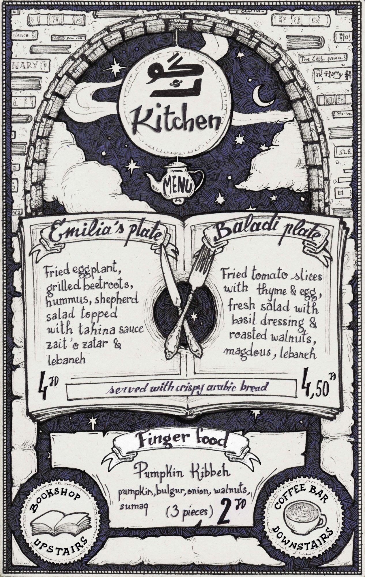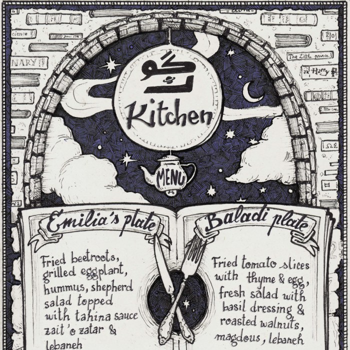 Illustration made for the delicious, vegetarian, Kawon kitchen in Madaba :)